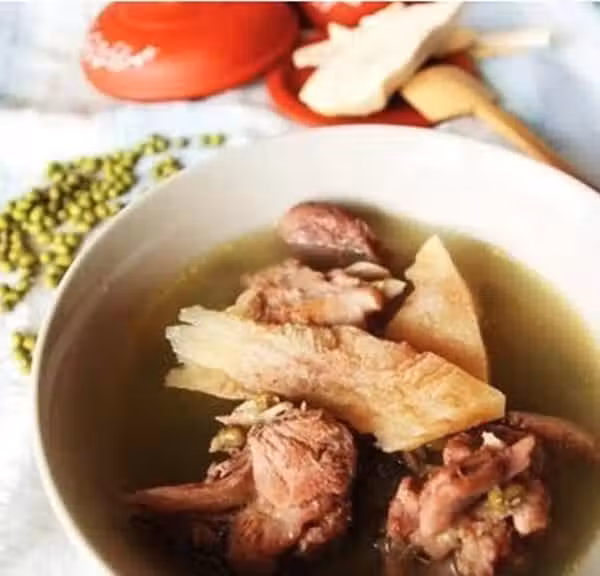原料:老鴨、綠豆、土茯苓、薑、陳皮、鹽