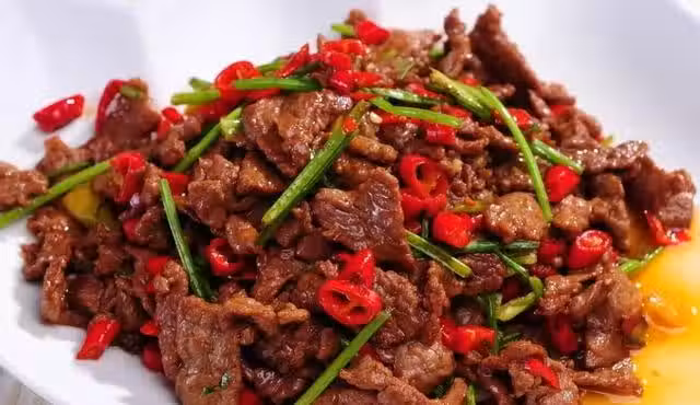 用料:牛裡脊500克、香菜梗100克、小米椒20克、雞蛋清10克、蔥10克、姜10克、青蒜15克、鹽10克、味精10克、白糖10克、蚝油10克、老抽5克、料酒20克、澱粉20克
