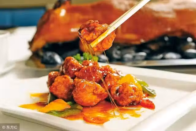 1、將豬肉切成切成菱形塊,肉塊用精鹽,汾酒拌勻,腌約15分鐘,加入雞蛋液和濕澱粉拌勻,在粘上干澱粉.
