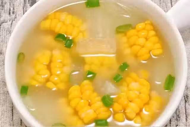 食材:冬瓜、玉米、食鹽、小蔥、食鹽、香油