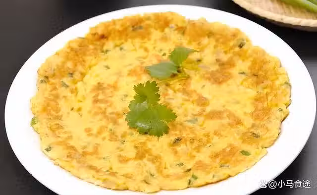 2.起鍋燒油,油鍋滑透,將熱油倒出,只留少許熱油,倒入蛋液,煎成餅狀,再倒入剛剛燒好的熱油,雞蛋浮起即熟,出鍋裝盤即可。