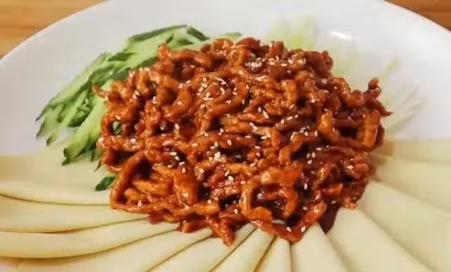 醬爆裡脊,醬爆主要突出甜麵醬的醬香味,裡脊可以改刀切絲或者片、丁。經過碼味上漿,滑油爆炒即成此菜,醬香濃郁,好吃下飯,可以卷豆皮卷餅味道更加。