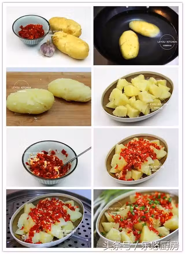 第七步:將整盤土豆放入開水鍋中,大火蒸5分鐘。