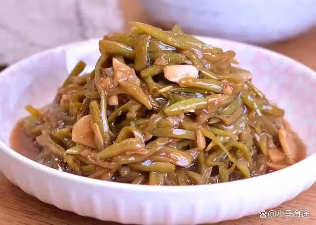 醬燒豆角絲,豆角絲的另一種家常做法,採用醬燒的做法,將豆角絲燒熟,醬香濃郁,豆角脆嫩,咸鮮下飯。