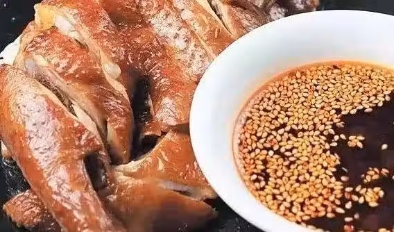 3.麻辣味碟是將鹽、雞精各1 勺,味精、白糖各2 勺,醋半勺,紅油2 勺,花椒油1勺,滷水原湯4 勺,花椒麵1 勺,熟芝麻少許,納碗拌勻即可。