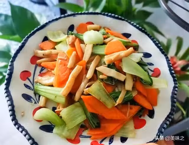 胡蘿蔔適量、油菜適量、白玉菇適量、鹽適量、食用油適量、蚝油適量。