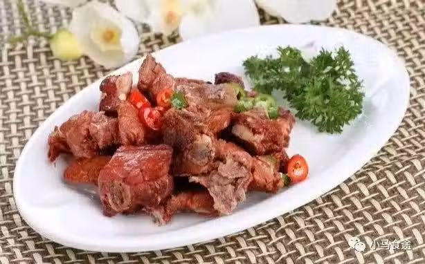材料:大排骨、料酒、醬油、白糖、高湯、味精、蔥花、香油、五香粉、植物油。