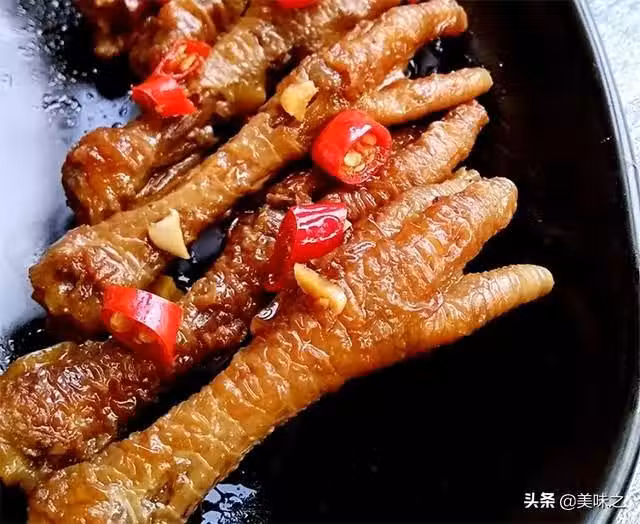 雞爪10個、白醋1勺、蜂蜜1勺、料酒15g、生抽30g、蚝油20g、鹽適量、蒜末10g、辣椒10g、食用油100g。