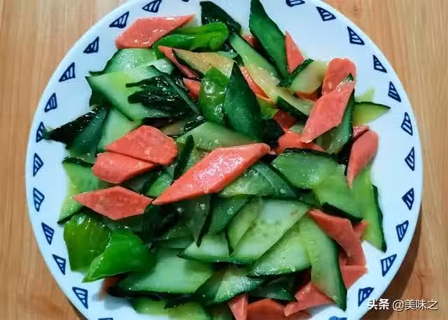 黃瓜1根、火腿腸3根、青椒半個、食用油適量、鹽1勺。