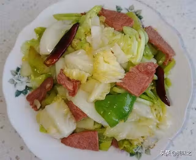 圓白菜半個、尖椒2個、醬牛肉1塊、鹽2勺、干紅辣椒6個、白鬍椒1勺。