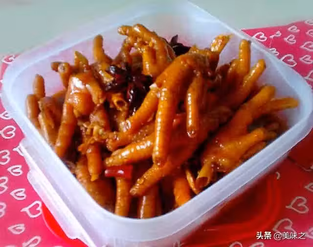 雞爪適量、八角2朵、蒜適量、姜適量、干辣椒適量、料酒適量、生抽適量、老抽適量、鹽適量、雞精適量。