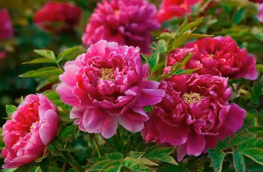 牡丹花紅葉綠,常被稱之為「花中之王」,花朵碩大秀麗,自然而然給人一種雍容華貴之感。