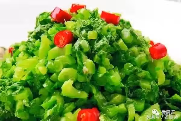 1.將雪裡蕻去老莖黃葉洗凈,在日光下曬至稍干發蔫,均勻地抹上鹽,放入缸中,用石塊壓好,1天後取出,瀝乾澀水;
