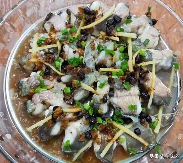 3、把爆香的豆豉淋在鰻魚上面,鍋中水燒開,上鍋蒸7分鐘左右,再燜2分鐘。