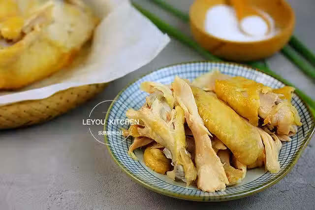 第一步:準備食材。三黃雞1隻(1300克左右)、姜1小塊、香蔥幾根、鹽焗雞粉60克。