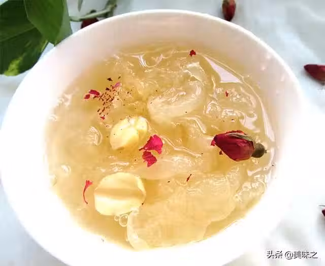 5、銀耳蓮子羹燉好後,我喜歡玫瑰就加了朵玫瑰。