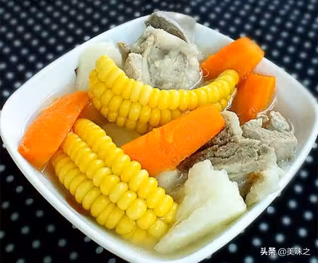 6、放入淮山、玉米和胡蘿蔔,繼續煲1個小時,如果不想這麼麻煩的話,可以把所有材料放入沙煲中燒開轉小火煲90分鐘,效果也一樣。