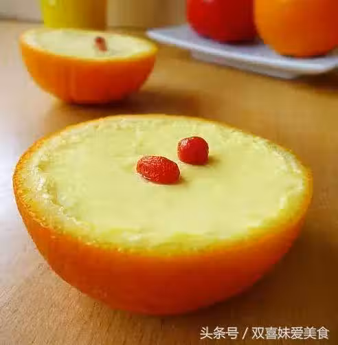 4.蓋上橙子帽,放入碗里(可用牙籤固定,當時忘記了)。