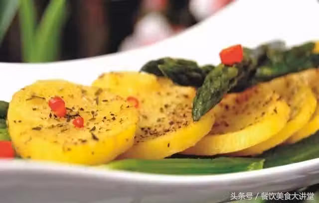 【材料】蘆筍400克、土豆300克、法香碎20克、黃油10克(融化)、胡椒粉2克、辣椒麵5克、橄欖油5克