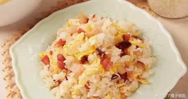 8 倒入冷米飯,炒散,放入炒好的雞蛋,炒勻炒透。