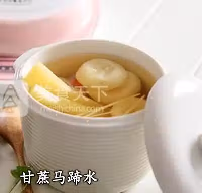 材料:甘蔗 200克,生薑 10克,冰糖 適量,馬蹄 80克,枸杞 適量