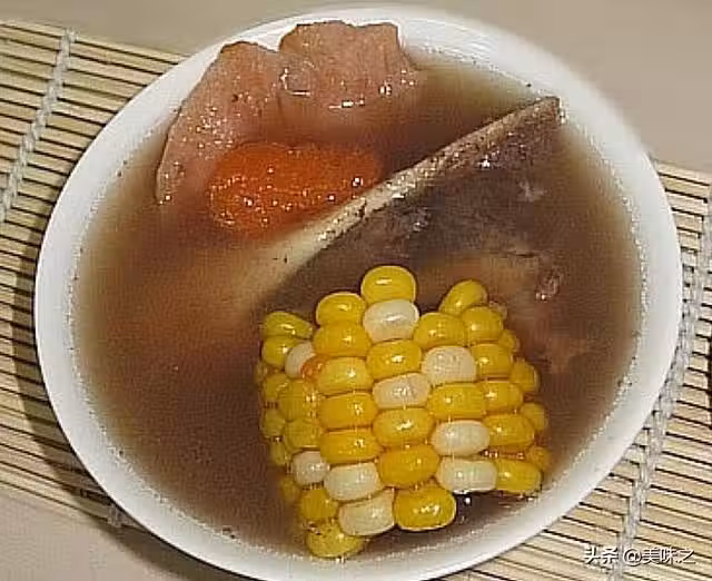 7、蓮藕塊煲粉了,再放玉米塊和紅蘿蔔塊,湯再次煲滾,放鹽調味即可。