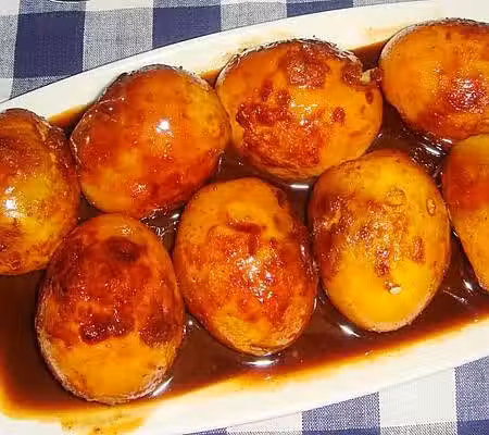 做法: 1)雞蛋洗凈,冷水下鍋,小火煮熟。 2)煮好的雞蛋剝殼後用廚房紙擦乾。 3)放入油鍋中慢火炸。 4)炸至虎皮色時撈出。 5)鍋內留少許底油,放入冰糖。 6)小火熬到起大泡。 7)放入炸好的雞蛋翻炒。 8)炒到雞蛋表皮顏色發紅。 9)放入以前的老鹵。 10)加上各種香料。 11)蓋上鍋蓋,慢火咕嘟大約15分鐘,湯快收干時關火,根據口味適量調入食鹽。