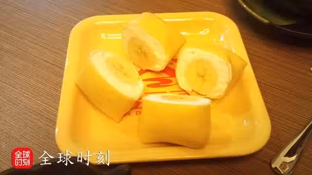 9、翻過來,香蕉班戟就做好了。做好後的班戟需放在冰箱冷藏保存,最好一天之內食用完畢