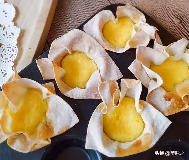 餛飩皮12張、純牛奶70g、動物奶油90g、煉乳8g、雞蛋黃2個、白砂糖30g、低筋麵粉10g。