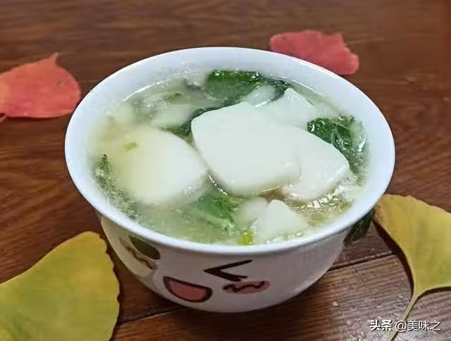 5、等年糕煮軟,調味,加點鹽,雞精,淋點麻油即可。