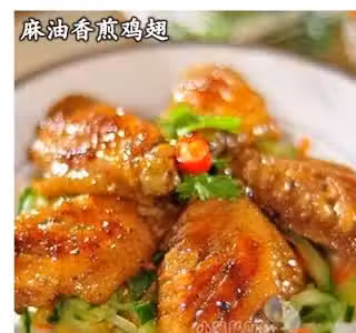 9. 將雞翅在平底鍋中小火雙面煎熟,擺在青菜上即可食用。