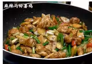 材料:馬鈴薯 2個,雞腿 2隻,韭菜花 200克,蒜頭 10個,辣椒 2支,蔥 3支,九層塔 30克