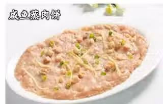 材料A:豬肉碎500克,馬鮫鹹魚50克(洗幹凈,取出肉,煎香),薑絲 1湯匙