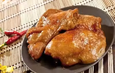 4. 雞腿腌好後放微波爐架上烤八分鐘,取出來再塗一層蜂蜜。
