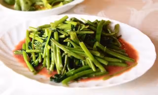 食材:空心菜 (300克)、腐乳 (一塊)、大蒜 (2粒 蚝油 15克)、油 (適量)。