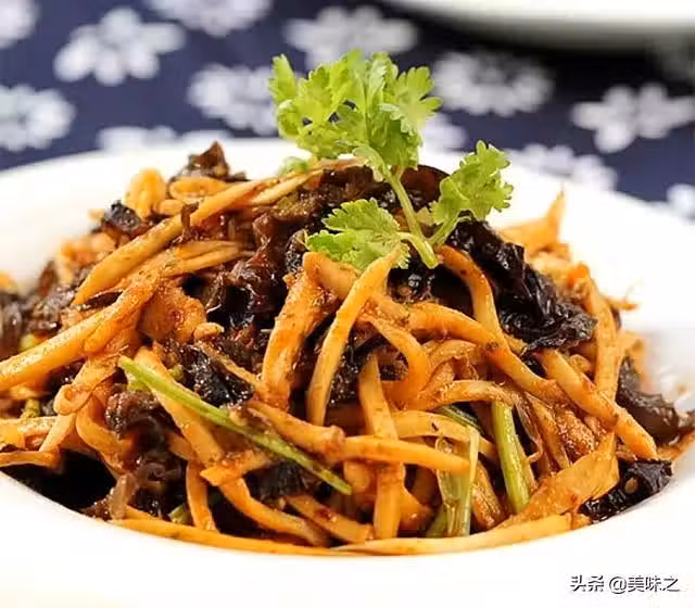 杏鮑菇、黑木耳、香菜、魚香肉絲調汁、胡椒粉、紅辣椒油、色拉油、鹽。