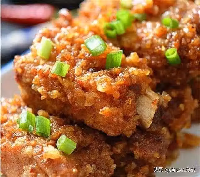 13、抓拌均勻,使每塊排骨表面均勻沾著米碎。
