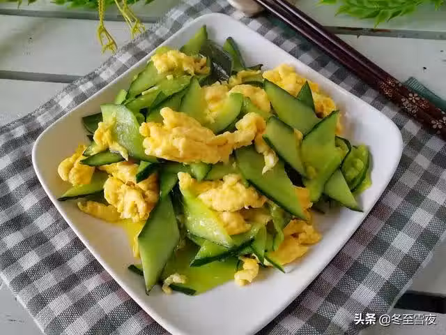 【雞蛋炒黃瓜】所需材料:黃瓜2根、雞蛋3個、油鹽適量、蔥1段、
