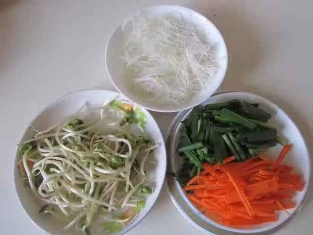 原料: 新竹米粉 1把 胡蘿蔔 半根 豆芽 1小把 韭菜 1小把 生抽 1勺 素蚝油 1勺 油鹽 適量