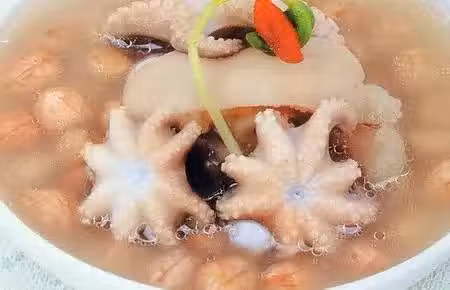 材料:章魚乾1~2隻(約150克)、豬腳2隻、生老薑1塊。