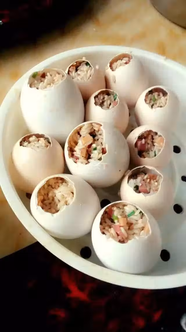 1 在雞蛋的一頭敲一個小洞,去蛋白留蛋黃。