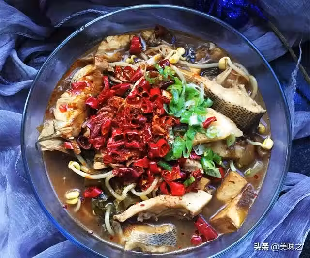 酸菜適量、鱸魚一條、豆腐適量、蔥適量、姜適量、花椒適量、麻椒適量、干辣椒適量、豆芽適量、鹽適量、油適量、醬油適量、料酒適量。