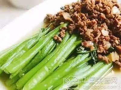 1. 菜心洗凈,少量豆豉切碎,肉末放醬油,料酒醃制。
