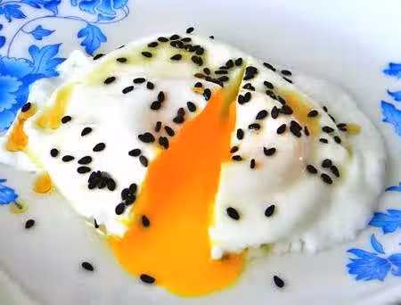 食材:雞蛋1個、香油適量、醋適量、黑芝麻適量。