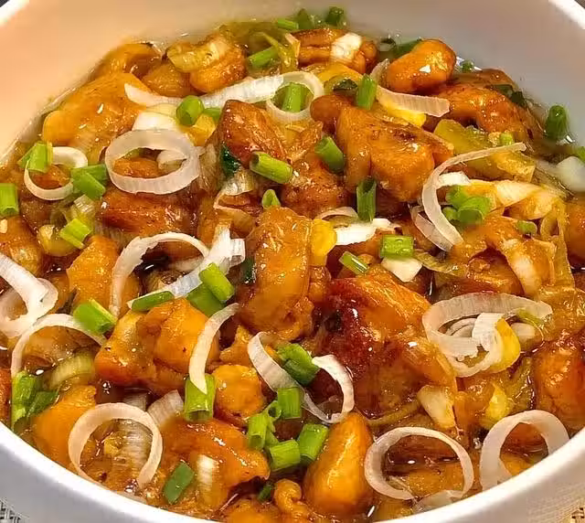 (1)雞胸肉洗凈切塊,小蔥剝皮切成蔥花。