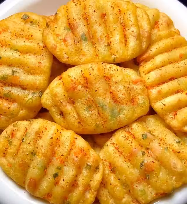 (3)餡料:土豆泥碗中加入胡蘿蔔丁、火腿丁、蔥花、食鹽、胡椒粉、雞精、澱粉揉成麵糰,再將餡料依次捏成餅狀備用。