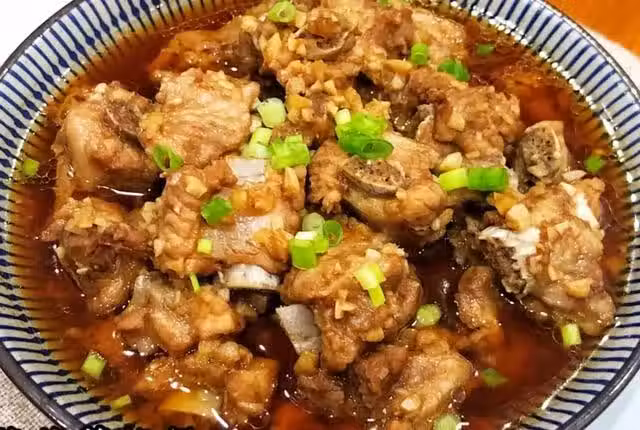 (2)腌制排骨:排骨放入碗中,加入適量的蒜末、生抽、老抽、蚝油、食鹽、胡椒粉、食鹽抓拌均勻,腌制片刻入味備用。