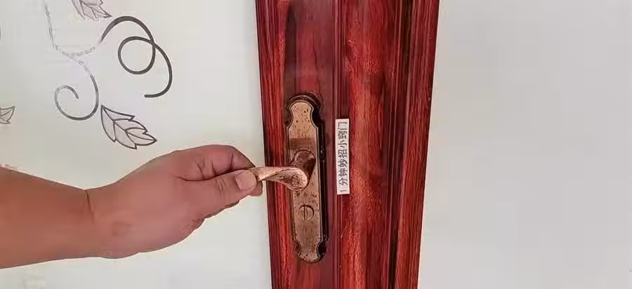 其實家裡衛生間的門設計的是非常人性化的,為了防止家裡的一些老人洗澡暈倒,或者家人突發的事故,就在門把手的下方,設計了一下圓形的小開關,而這個實心的小按鈕,就是連接門裡面反鎖的一個小開關。