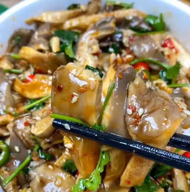 (1)蘑菇洗凈撕條,香菜洗凈切段,小米辣切圈,小蔥切蔥花,蒜瓣剝皮切末備用。