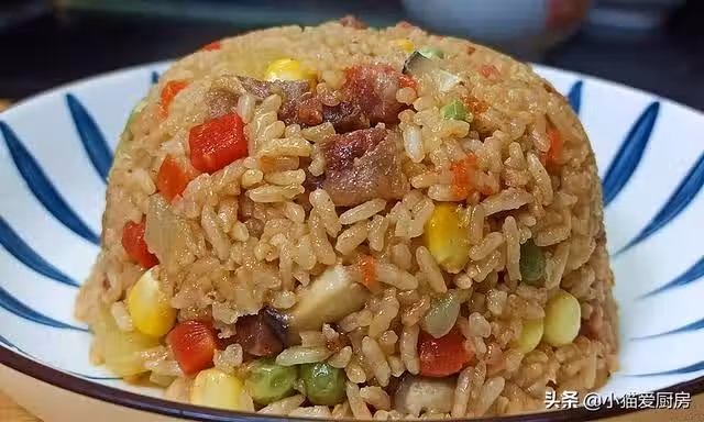 【製作主料】:大米半斤、青豌豆1把、1根臘腸、玉米粒1把、香菇2-3個、土豆1個、西紅柿1個